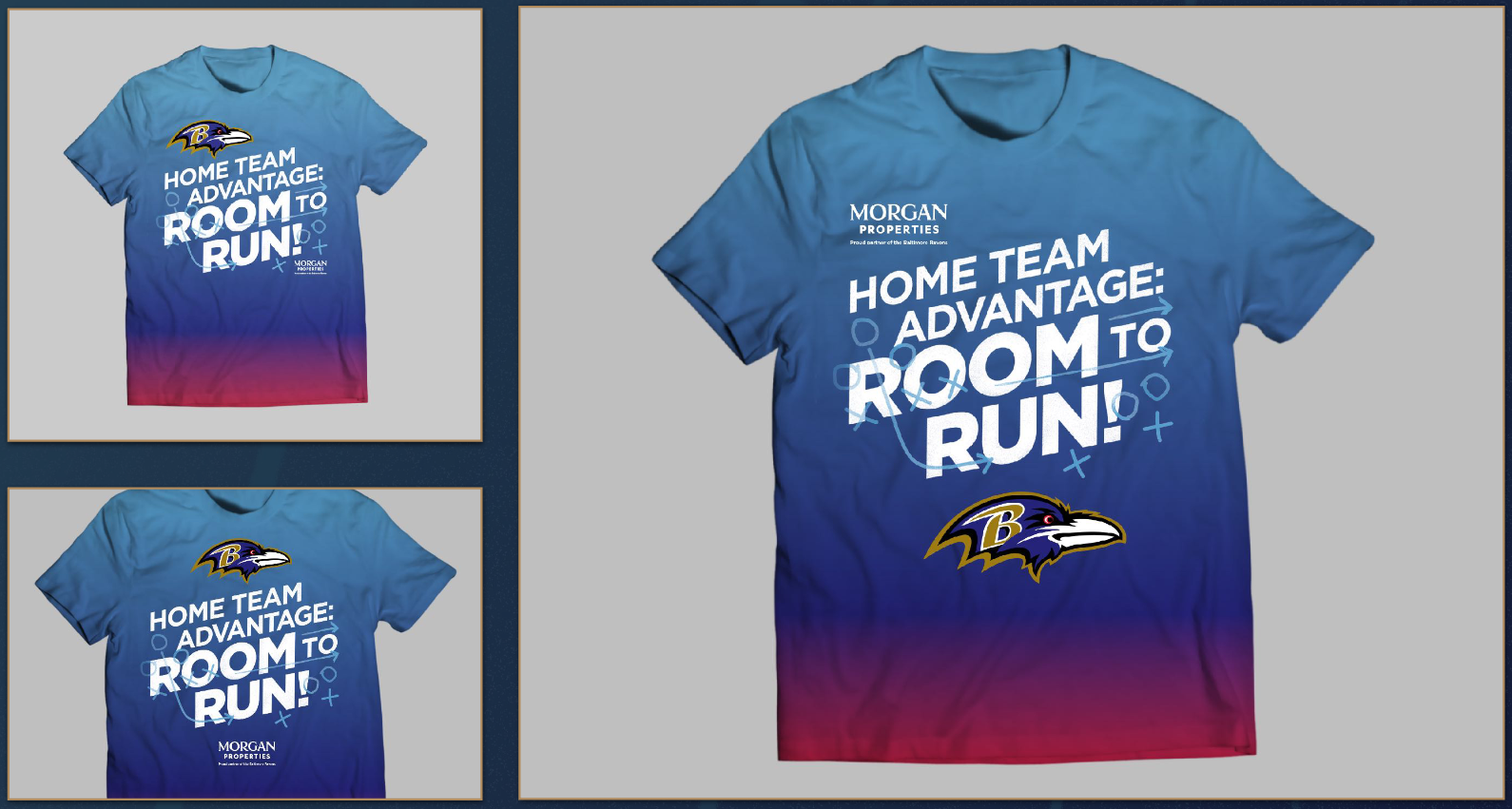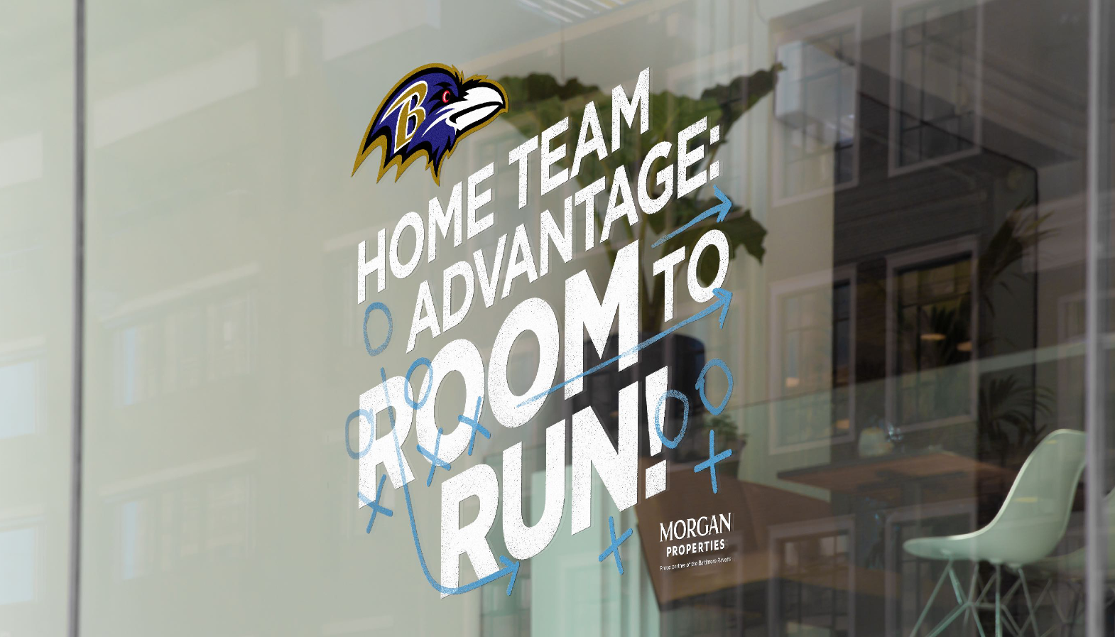“Room to Run” is a concept that speaks to the idea of the ground assault the Ravens use throughout the season with their quarterback and running back. Through this co-branded messaging, we wanted to sell through the concept of a partnership with Morgan Properties being an advantage to the prospective residence. While also pushing the brand forward through this activation.